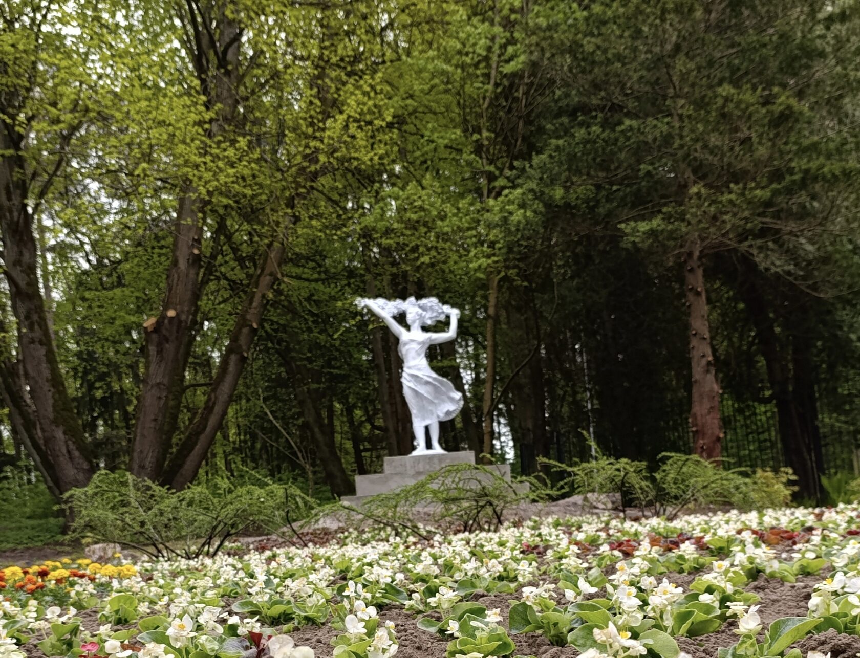 Преимущества: прогулка в прекрасном хвойном лесу, удобный спуск и подъём по дюне, выход к отреставрированной скульптуре "Девушка с венком" и к Братской могиле.