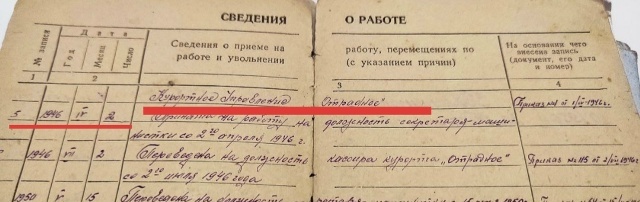 А 02 апреля 1946 года(т.е на следующий день) все приняты на работу в Курортное управление "Отрадное" (фото 2).
