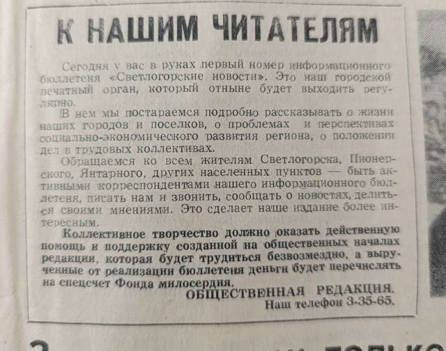 А в январе 1990 года жители Светлогорского района , в который входили Янтарный и Пионерский,впервые получили возможность узнавать новости побережья из печатном издания!